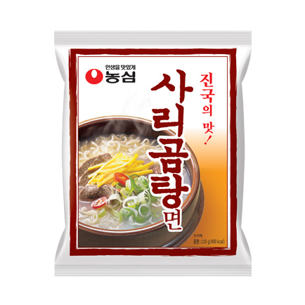 진국의 맛! 사리곰탕면. 예로부터 임금님 수라상에도 올랐던 고급요리인 전통 곰탕의 국물맛을 재현한 라면입니다. 소의 뼈와 고기를 푹 고아 우려낸 구수하고 진한 국물맛으로 얼큰한 맛이 주