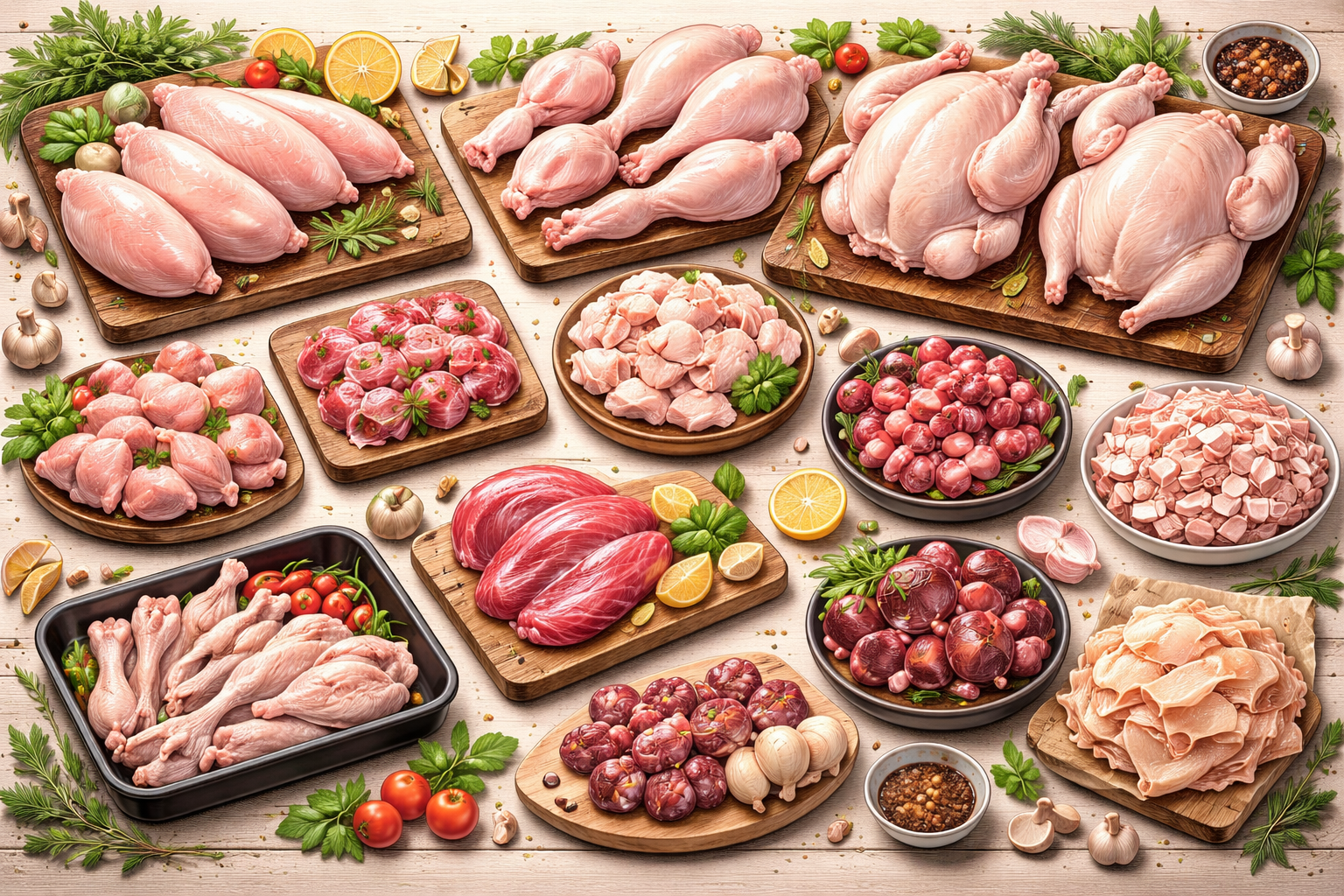가슴·안심·다리·날개부터 뼈/프레임, 닭발·똥집·간·염통 등 부산물까지, “한 마리에서 얼마나 나오고(중량), 어디에 쓰며(용도), 왜 가격이 갈리는지(구조)”를 한 번에 정리합니다.