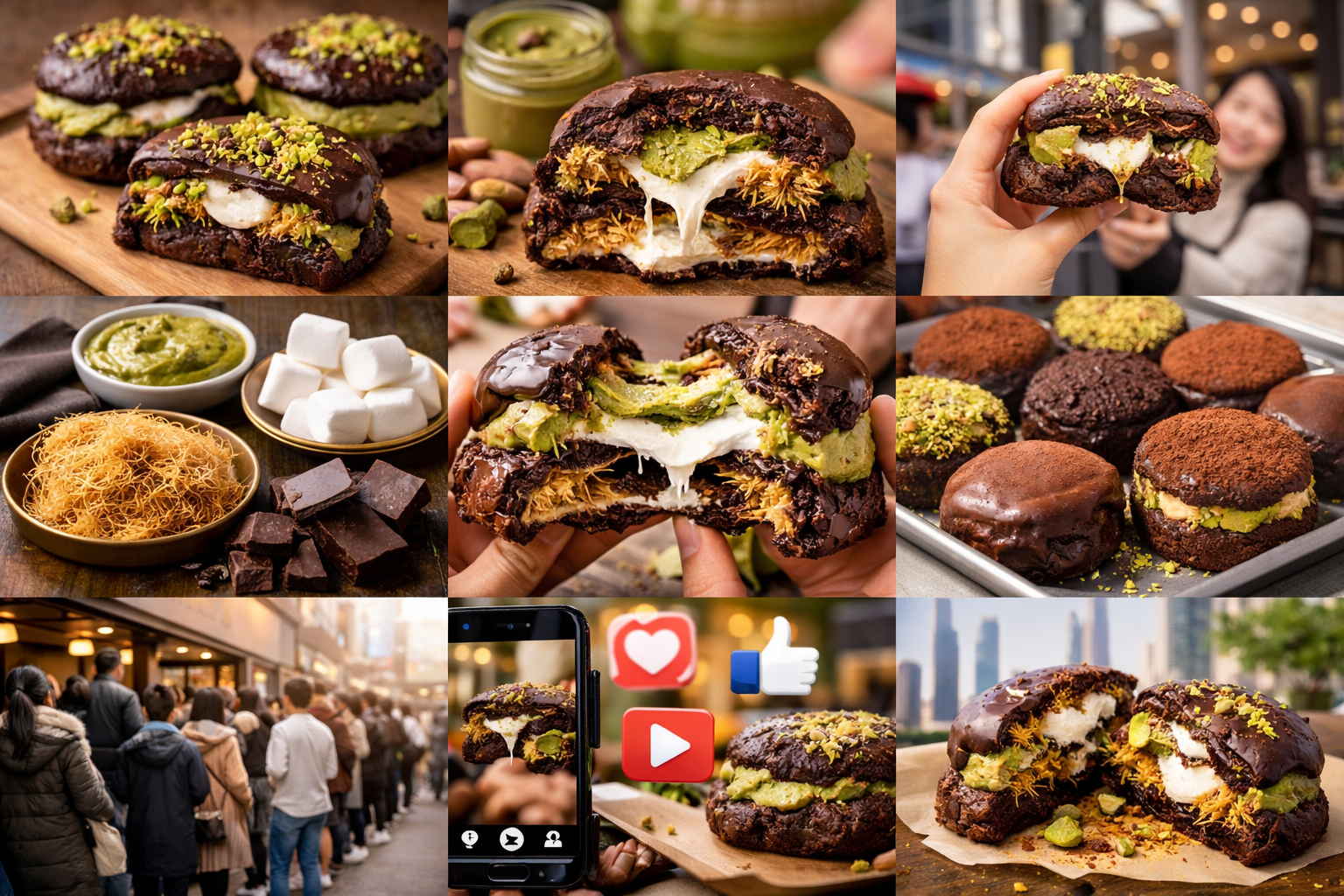 쫀득(베이스) + 바삭(카다이프) + 꾸덕/달콤(피스타치오·초콜릿)이 동시에 들어오면 맛보다 경험이 먼저 기억됩니다. 그래서 먹방/ASMR/숏폼에 특히 강합니다.[1][2]