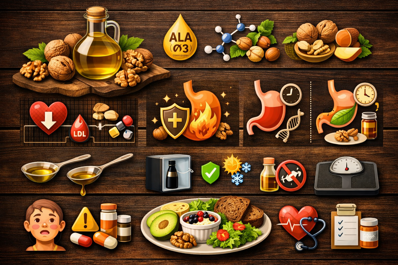 호두(견과) 섭취 연구들에서는 LDL(나쁜 콜레스테롤) 및 총콜레스테롤 감소가 비교적 일관되게 보고됩니다. 호두 오일 자체에 대한 연구는 상대적으로 적지만, 불포화지방을 식단에 포함시키는 구조가 지질 지표에 유리할 수 있다는 점에서 방향성은 비슷합니다.