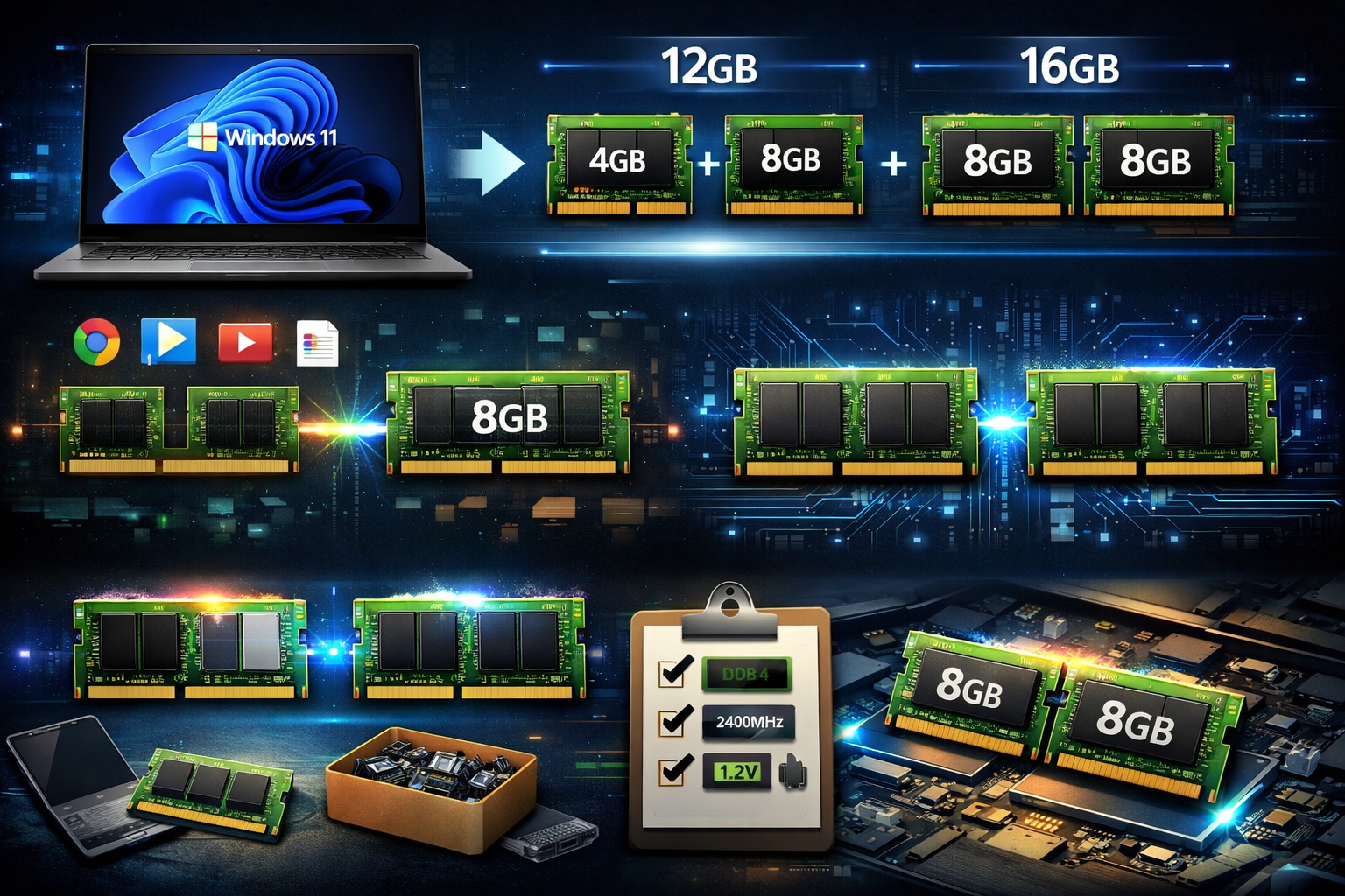 DDR4 2400MHz SO-DIMM 환경에서 “8GB 하나만 추가해서 12GB로 맞출지”, “기존 4GB를 빼고 8GB×2로 16GB를 맞출지”를 체감 성능과 장기 사용성 관점에서 정리합니다.