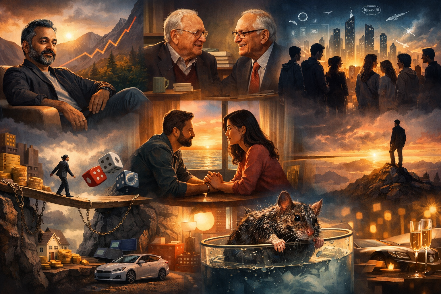 차마스는 많은 사람들이 돈, 직함, 사회적 성공을 인생의 목표로 삼지만, 그런 목표는 달성하는 순간 오히려 사람을 멈추게 만들 수 있다고 봅니다. “부사장이 되겠다”, “파트너가 되겠다”, “얼마를 벌겠다” 같은 식의 목표는 일정 수준까지는 동기부여가 될 수 있지만, 그것이 삶 전체를 이끄는 기준이 되면 결국 자기 자신과 멀어질 수 있습니다. 그는 과거 자신도 이런 외적 목표를 좇았고, 그 과정에서 본래의 자신과 멀어졌다고 회고합니다. 여기서 중요한 것은 목표 자체를 부정하는 것이 아닙니다. 핵심은 목표를 정체성으로 삼지 말라는 것입니다. 목표는 방향을 정하는 도구일 수는 있어도, 삶의 의미 전체가 되어서는 안 됩니다. “목표를 향해 달리는 삶”은 달성 순간 멈추기 쉽지만, “배움의 과정으로서의 삶”은 끝까지 현역으로 남게 만든다. 워런 버핏이나 찰리 멍거처럼 오랜 시간 동안 활발하게 사고하고 일한 사람들을 떠올려 보면, 그들은 단순히 성취를 쌓는 사람이 아니라 배우는 것 자체를 즐기는 사람에 가깝습니다. 즉 장기적으로 강한 사람은 무엇을 이뤘느냐보다, 배우고 적응하고 다시 시도하는 과정 속에 머무를 수 있는 사람입니다.