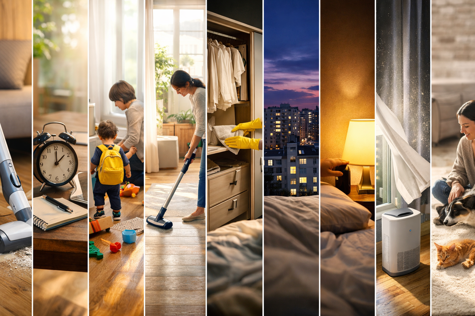사람들이 가장 많이 청소하는 시간은 ‘오전’이고, 가장 청소가 잘 되는 시간은 ‘오전 10시~12시’인 경우가 많습니다. 저녁 청소는 가능하지만 소음·먼지 재부유·생활 리듬 측면에서 ‘차선책’에 가깝습니다.