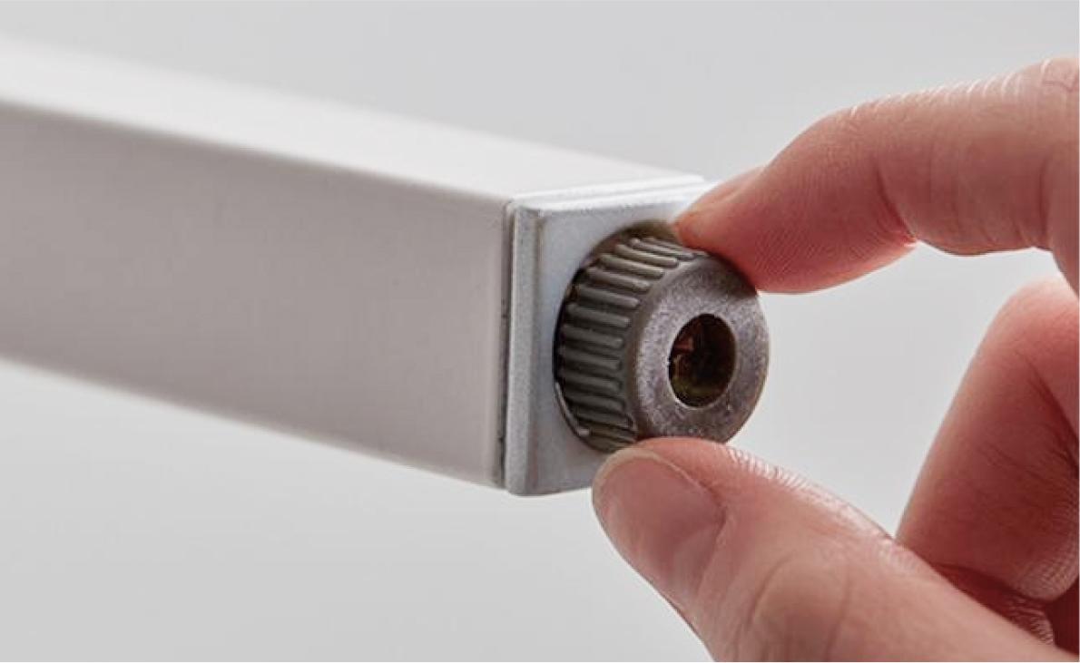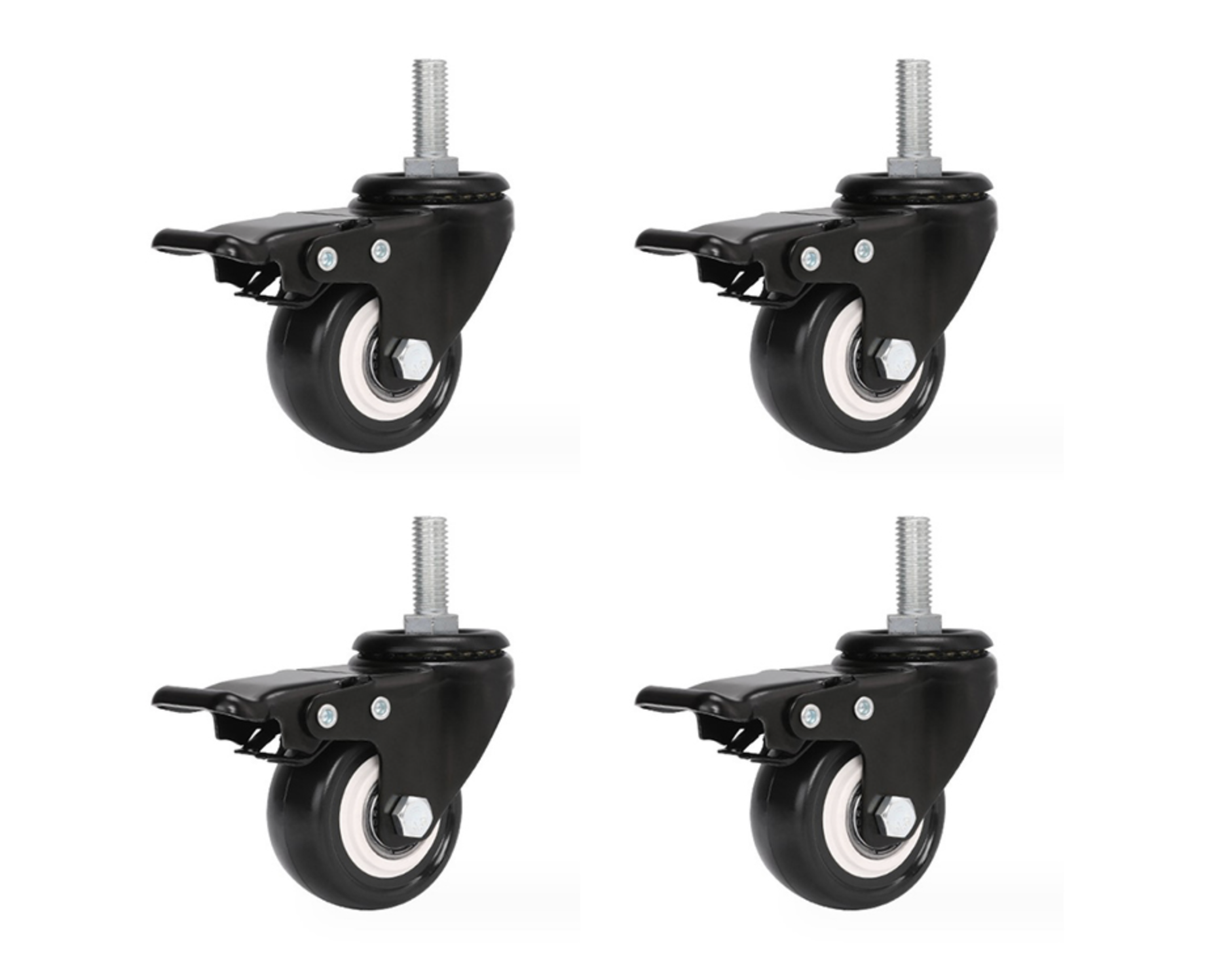 데스커 기본 다리의 수평 조절 볼트를 제거하고 M8 규격(8mm) 캐스터를 체결하면 이동형 데스크로 변신합니다. 저는 EMPIRE H9RM8BK 우레탄 1.5인치(40mm) 회전 브레이크 바퀴 4개를 장착했습니다. 바퀴는 꼭 브레이크 4개일 필요 없고, 2개만 브레이크형으로 하고 나머지는 무브형으로 조합해도 됩니다.