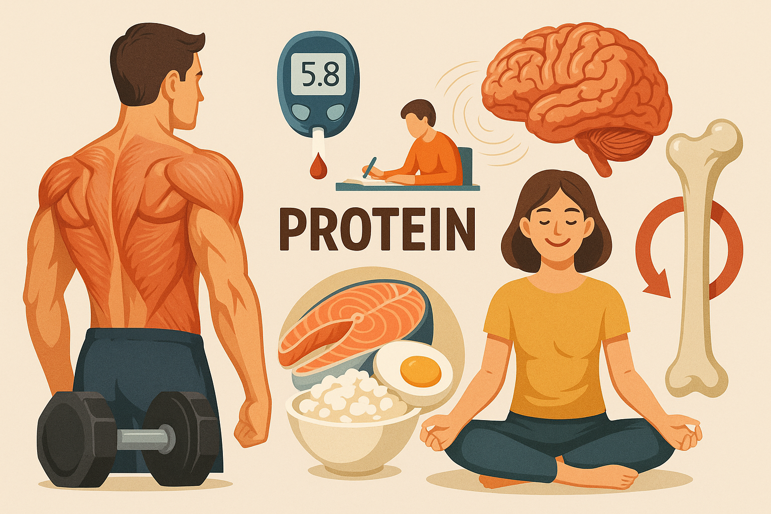 단백질은 칼슘 흡수를 촉진하고 골밀도를 유지하는 데 도움이 됩니다. 특히 노년기에는 단백질 부족이 골다공증 위험을 높일 수 있어 주의가 필요합니다.
