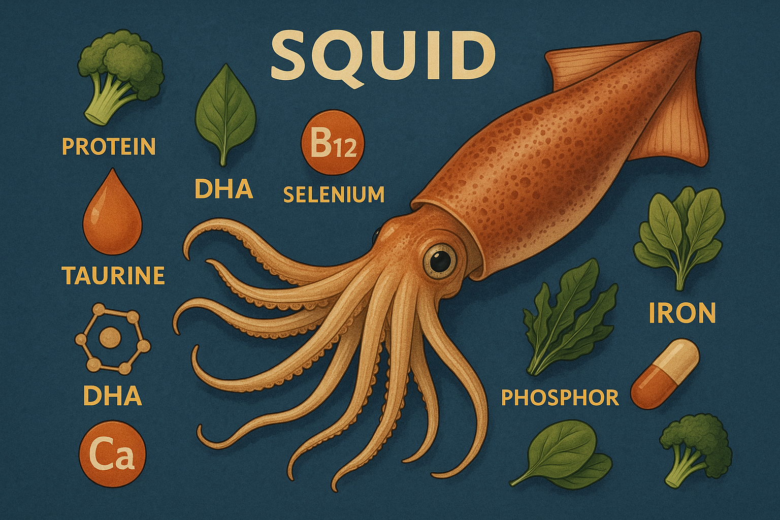 핵심 요약: 오징어는 타우린, DHA, 셀레늄, 단백질, 칼슘 등의 풍부한 영양소를 바탕으로 피로회복, 치매 예방, 항산화 및 여성 건강 개선에 탁월한 효능을 발휘합니다.