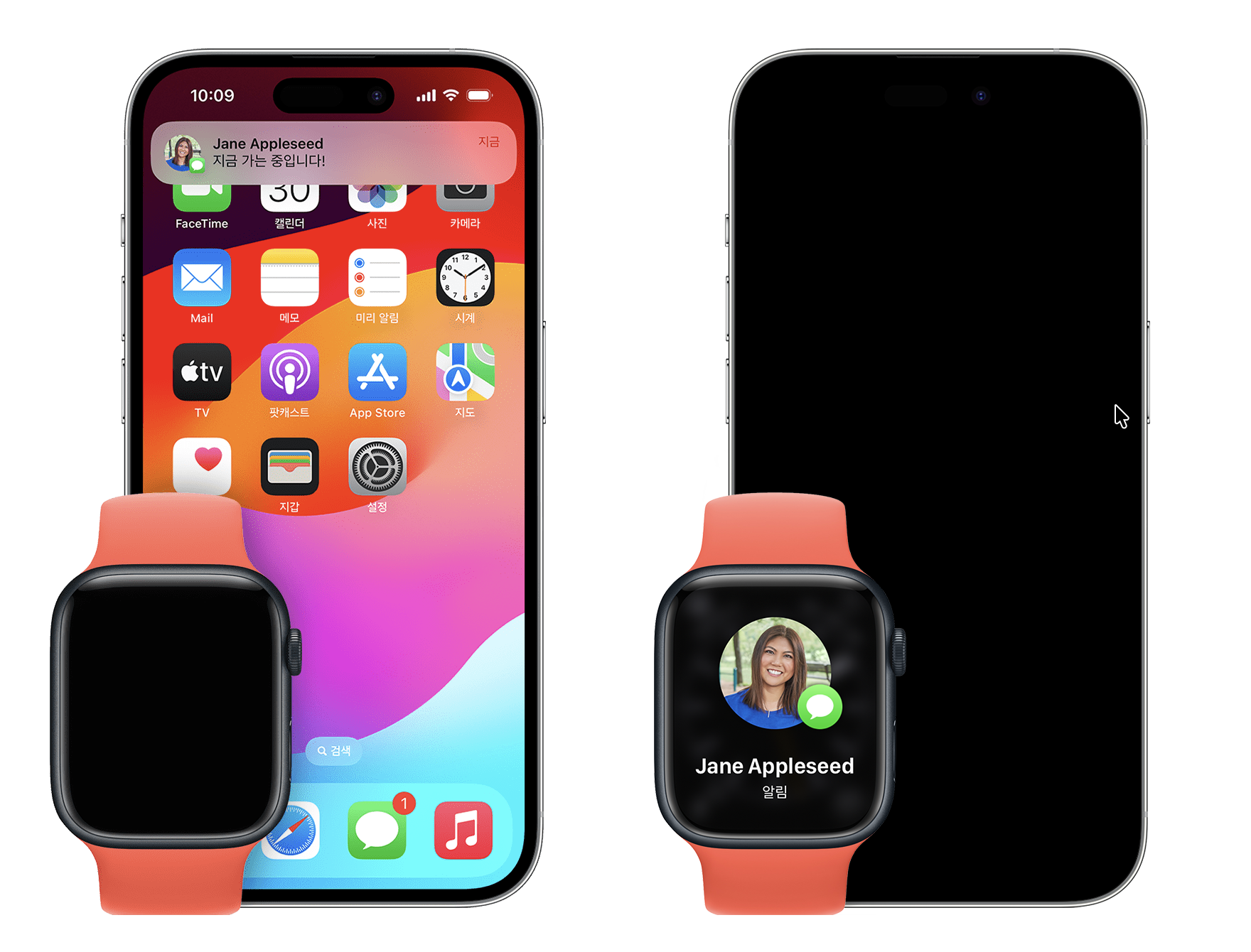 - 아이폰 화면이 꺼져 있을 때 → 워치가 대신 울리거나 진동/알림 표시