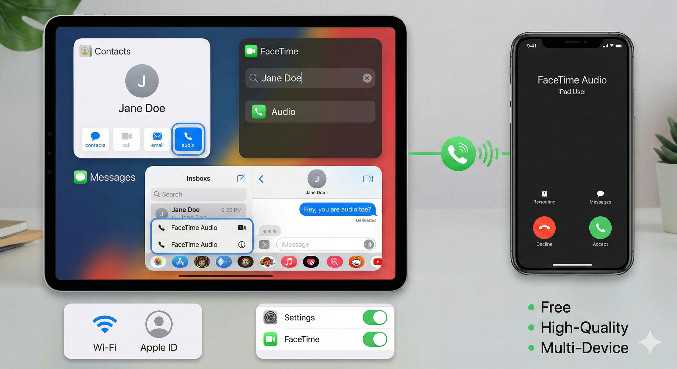 아이패드에서 FaceTime 오디오로 아이폰에 연락하는 방법은 크게 세 가지입니다.