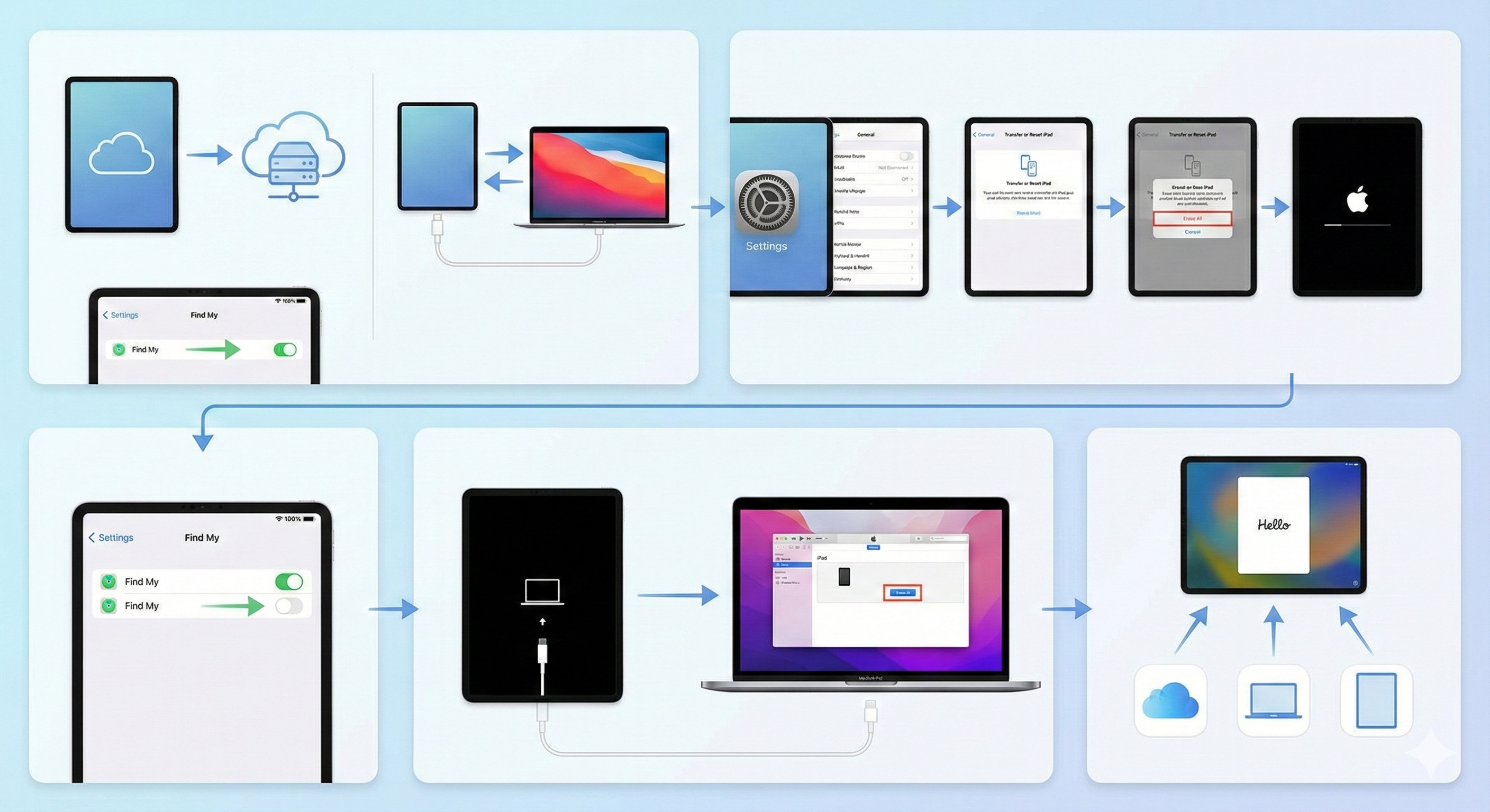 - ‘나의 iPad 찾기’ 끄기 → Apple ID 완전 로그아웃