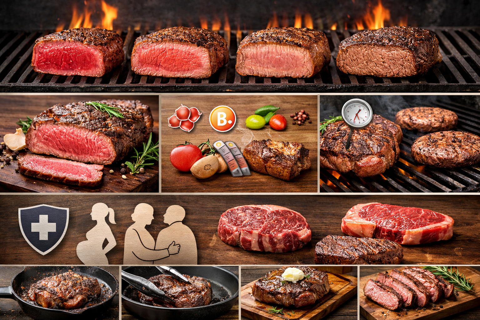 레어·미디엄 레어·미디엄·웰던을 맛/영양/건강/안전 관점에서 비교하고, 집에서 실패 없이 굽는 내부온도와 팁까지 정리합니다. 맛과 건강의 균형을 가장 잘 잡는 굽기는 미디엄 레어(Medium Rare)입니다.